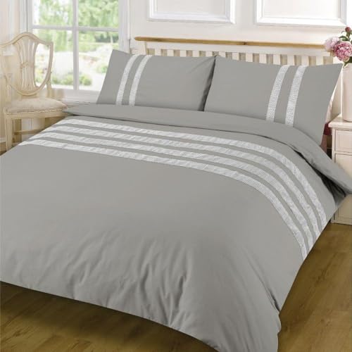 Casabella Luxury Crushed Velvet Panel Band Duvet Cover Sets with Pillow Case Super King Duvet Cover Bedding Set – Color Grey Crush Velvet Super King Duvet Cover Sets
