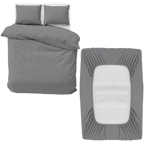 MOONLIGHT20015 Super King Bedding Set 4 Piece Duvet Cover Fitted Sheet with Pillow cases Soft Brushed Microfiber Duvet Cover sets Grey