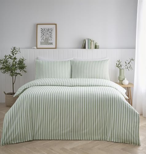 Kampala Hill Pencil Stripe Sage Duvet Cover Set Super King Bedding Set with Pillowcases