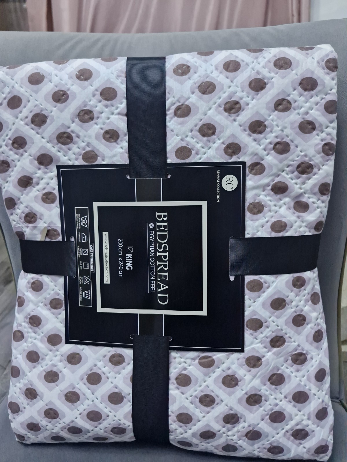 (Mink, Super King) 3Pcs Raffle Bedspread Quilted Embossed Bed Throw and 2 pillow case in all Sizes