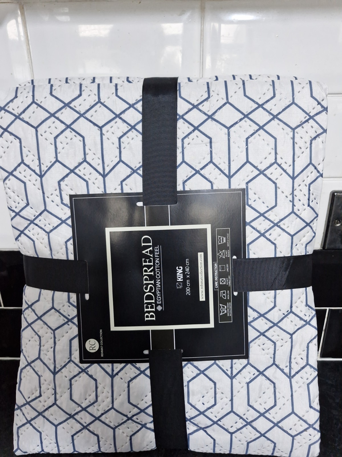 (Blue, Super King) 3Pcs Raffle Bedspread Quilted Embossed Bed Throw and 2 pillow case in all Sizes
