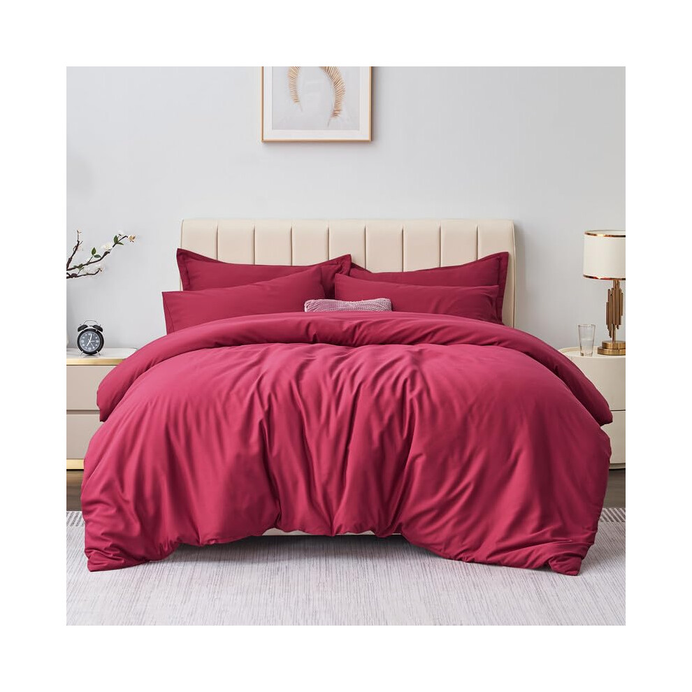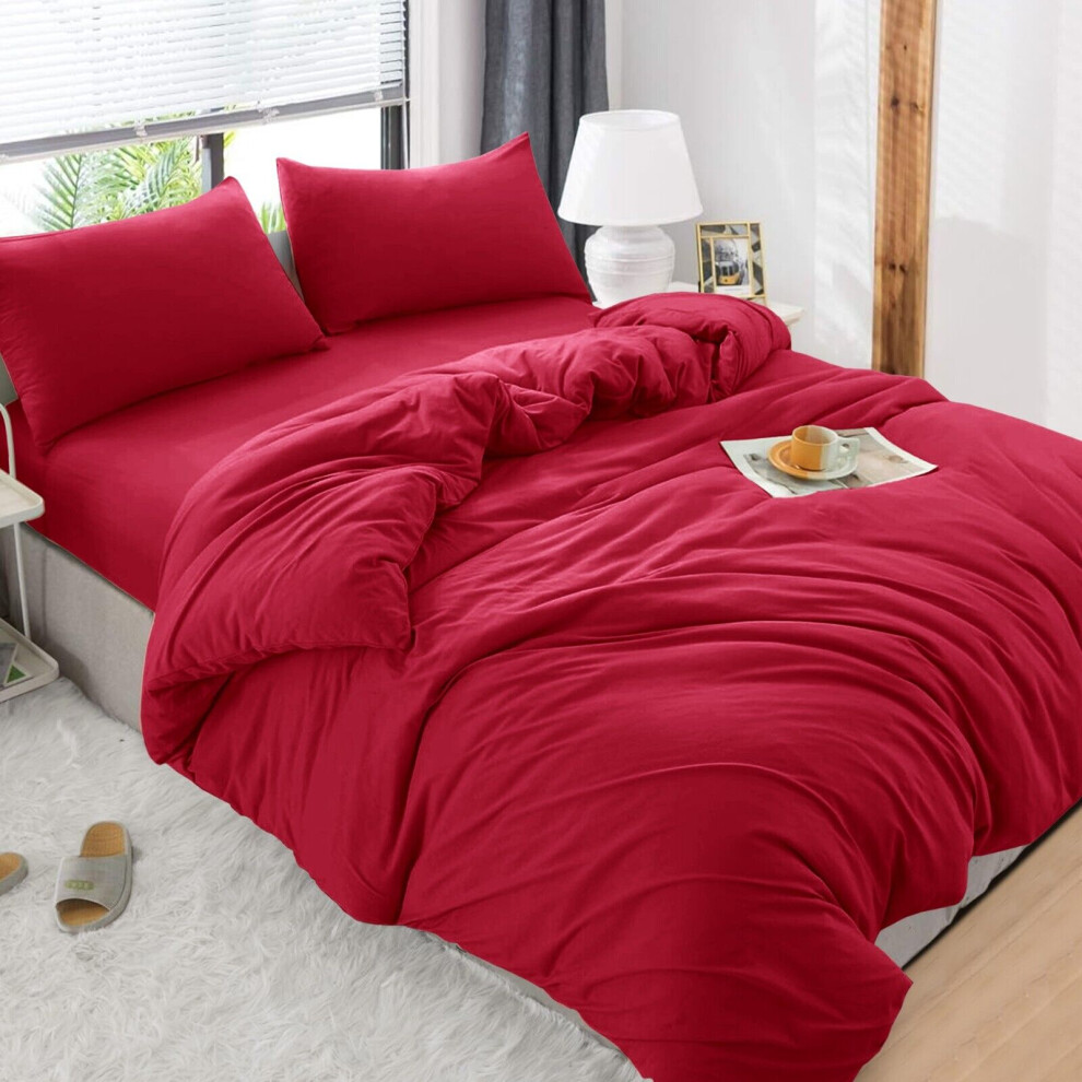 (Burgundy/Red, Super King) 4 Piece Duvet Covers Bedding Set Fitted Bed Sheets