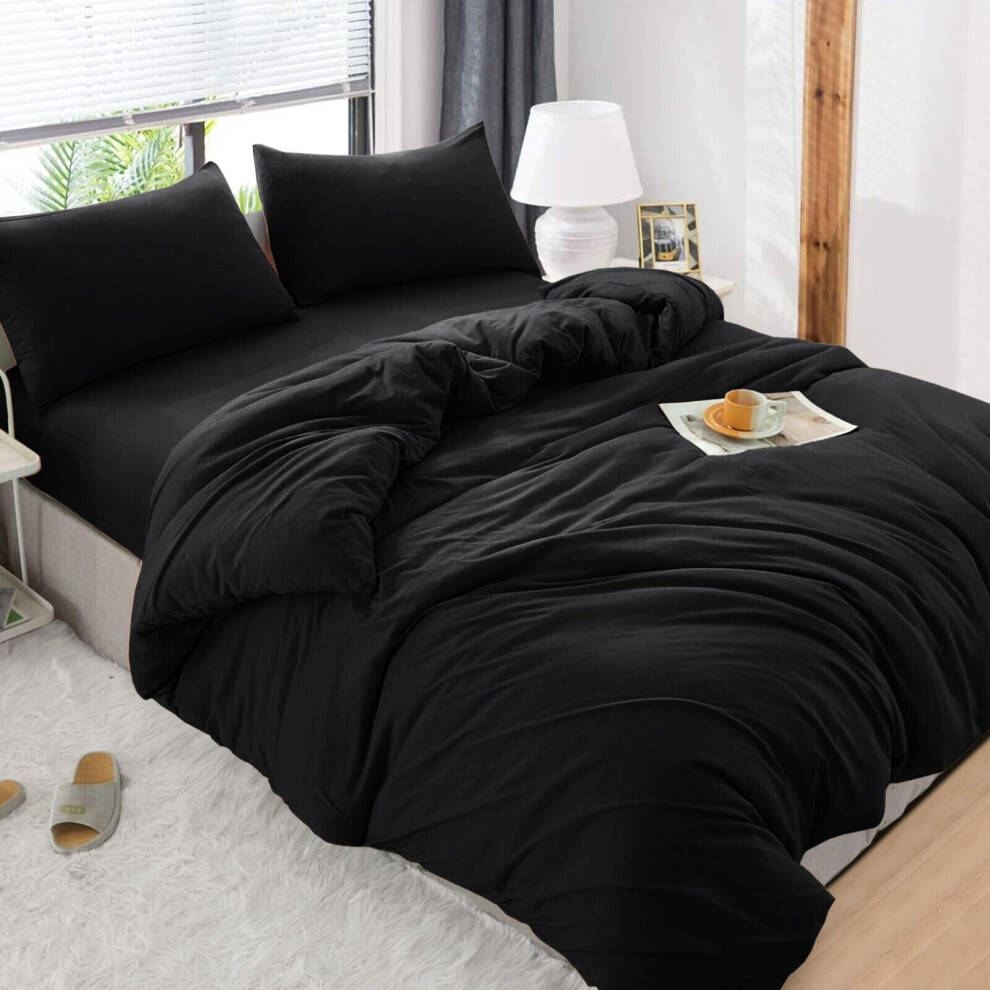 (Black, Super King) 4 Piece Duvet Covers Bedding Set Fitted Bed Sheets