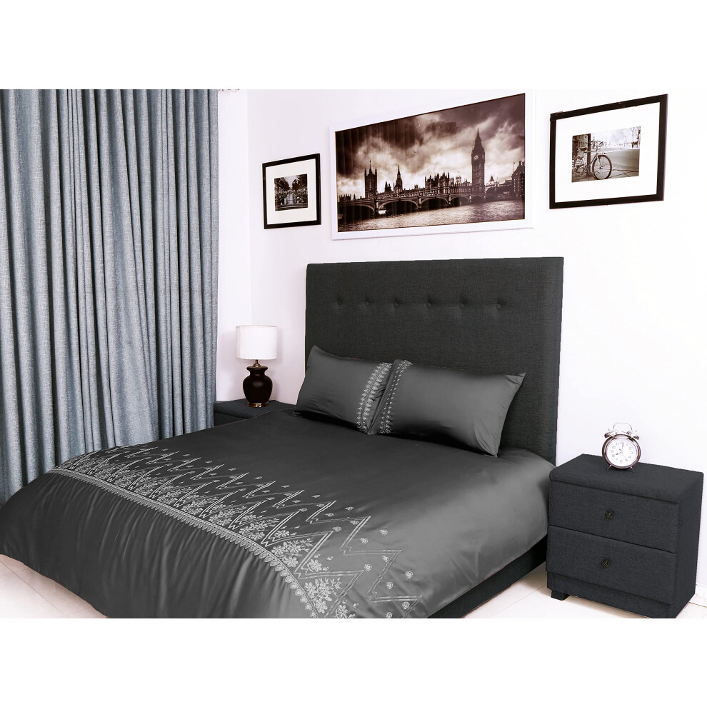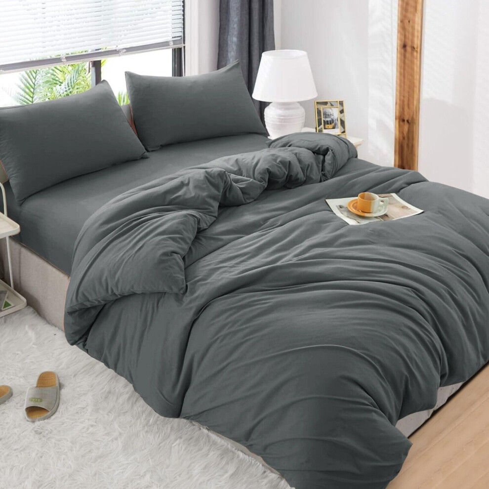 (Charcoal, Super King) 4 Piece Duvet Covers Bedding Set Fitted Bed Sheets