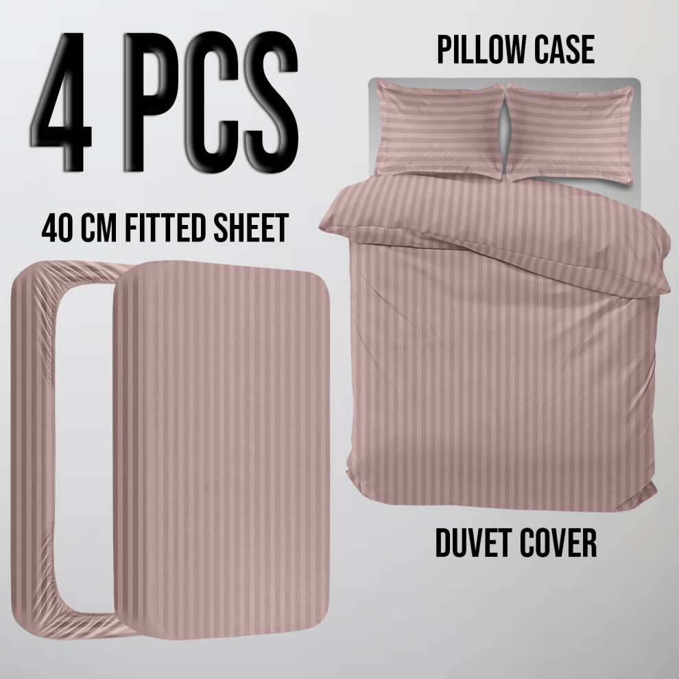 (Super King, Peach) Stripe Duvet Covers Bedding Set Fitted Sheet & Pillowcase