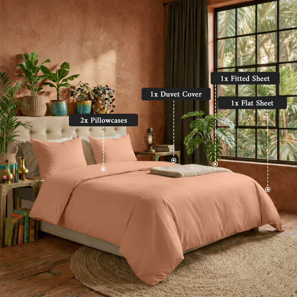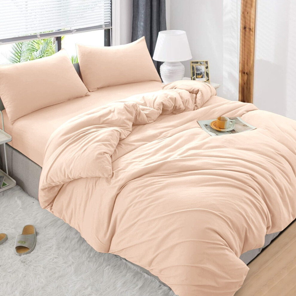 (Peach, Super King) 4 Piece Duvet Covers Bedding Set Fitted Bed Sheets