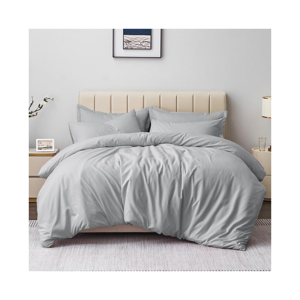 Aisbo Super King Duvet Covers Set Grey - 3Pcs Superking Size Bedding Set Soft Brushed Microfiber Quilt Cover with 2 Pillowcases