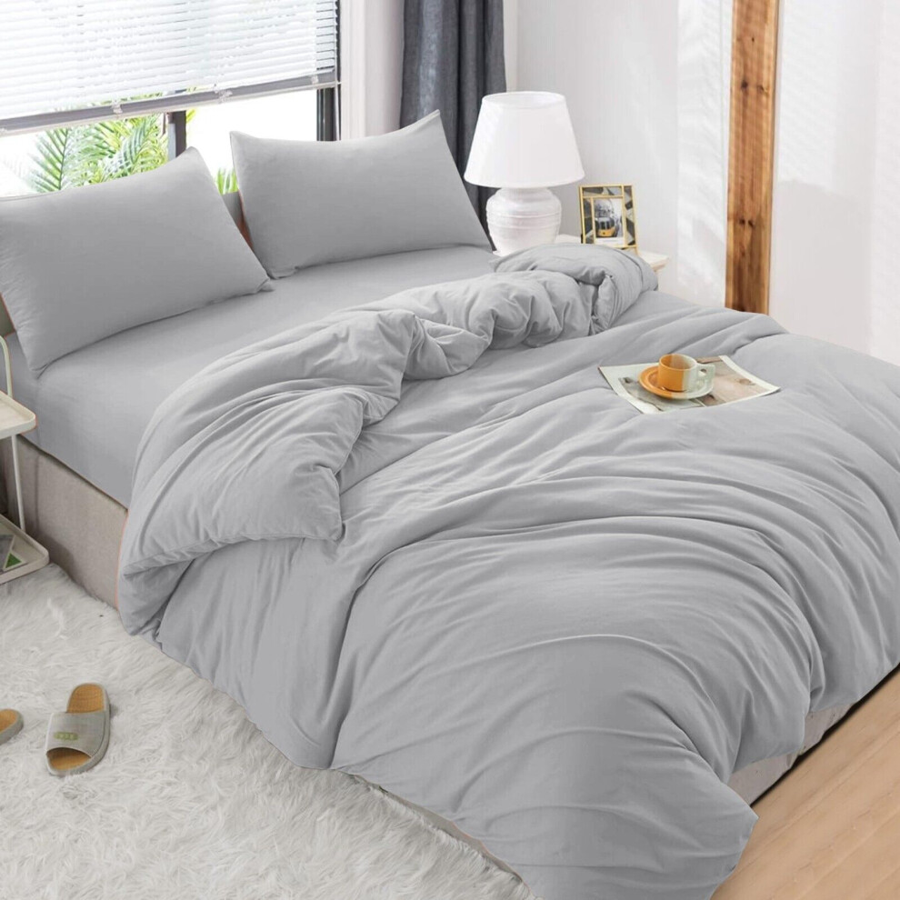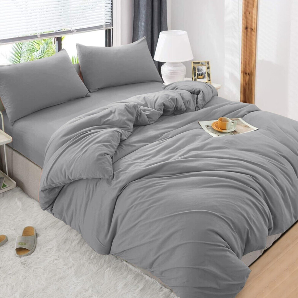 (Grey, Super King) 4 Piece Duvet Covers Bedding Set Fitted Bed Sheets