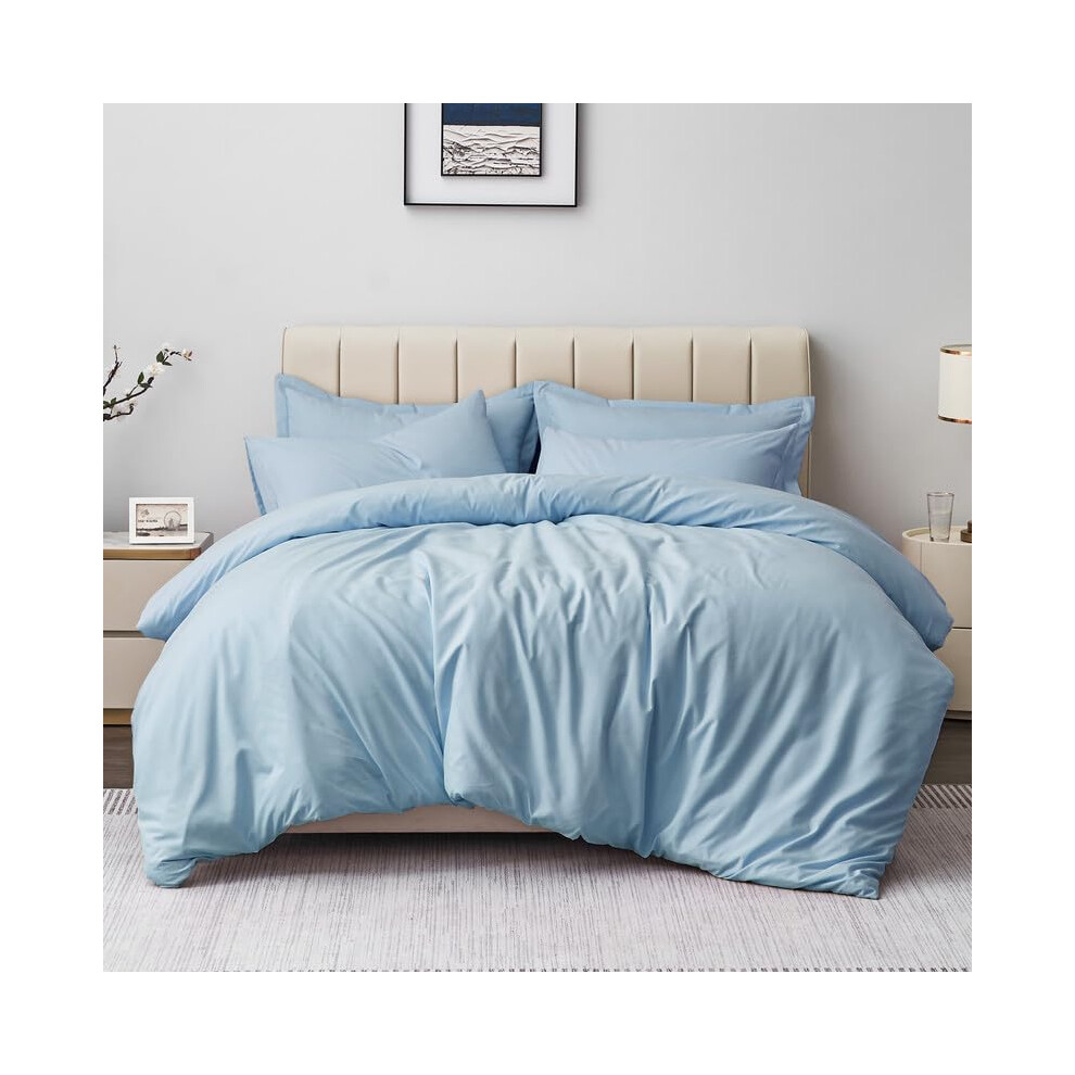 Aisbo Super King Duvet Covers Set Light Blue - 3Pcs Superking Size Bedding Set Soft Brushed Microfiber Quilt Cover with 2 Pillowcases