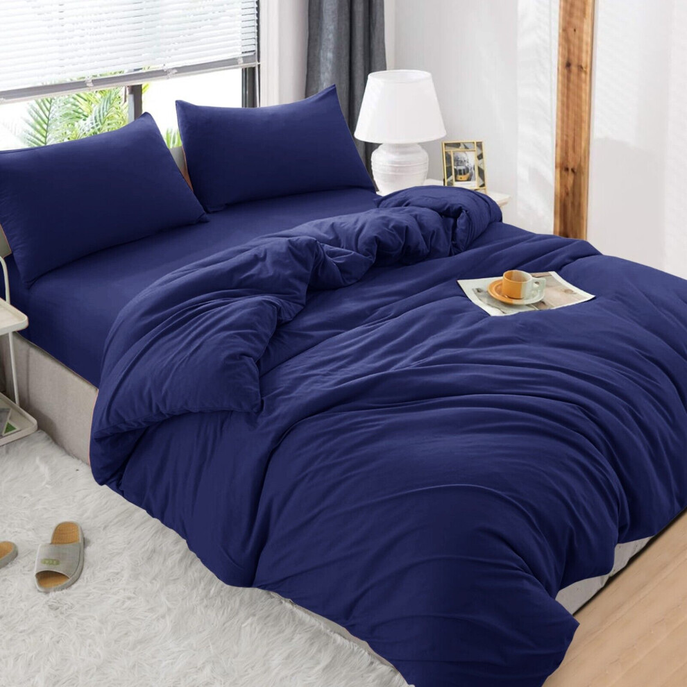 (Navy Blue, Super King) 4 Piece Duvet Covers Bedding Set Fitted Bed Sheets
