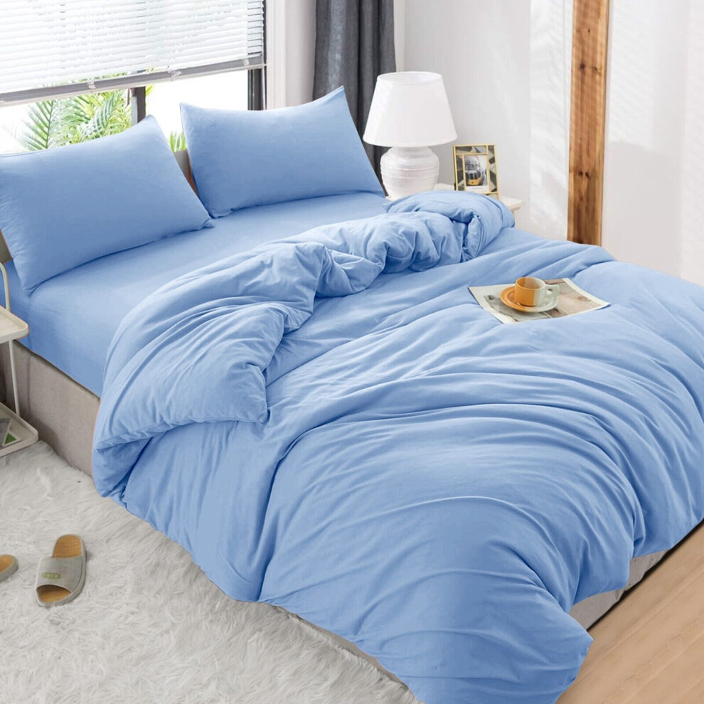 (Sky Blue , Super King ) Luxury Reversible Duvet Covers Quilt Quilted Bedding Set