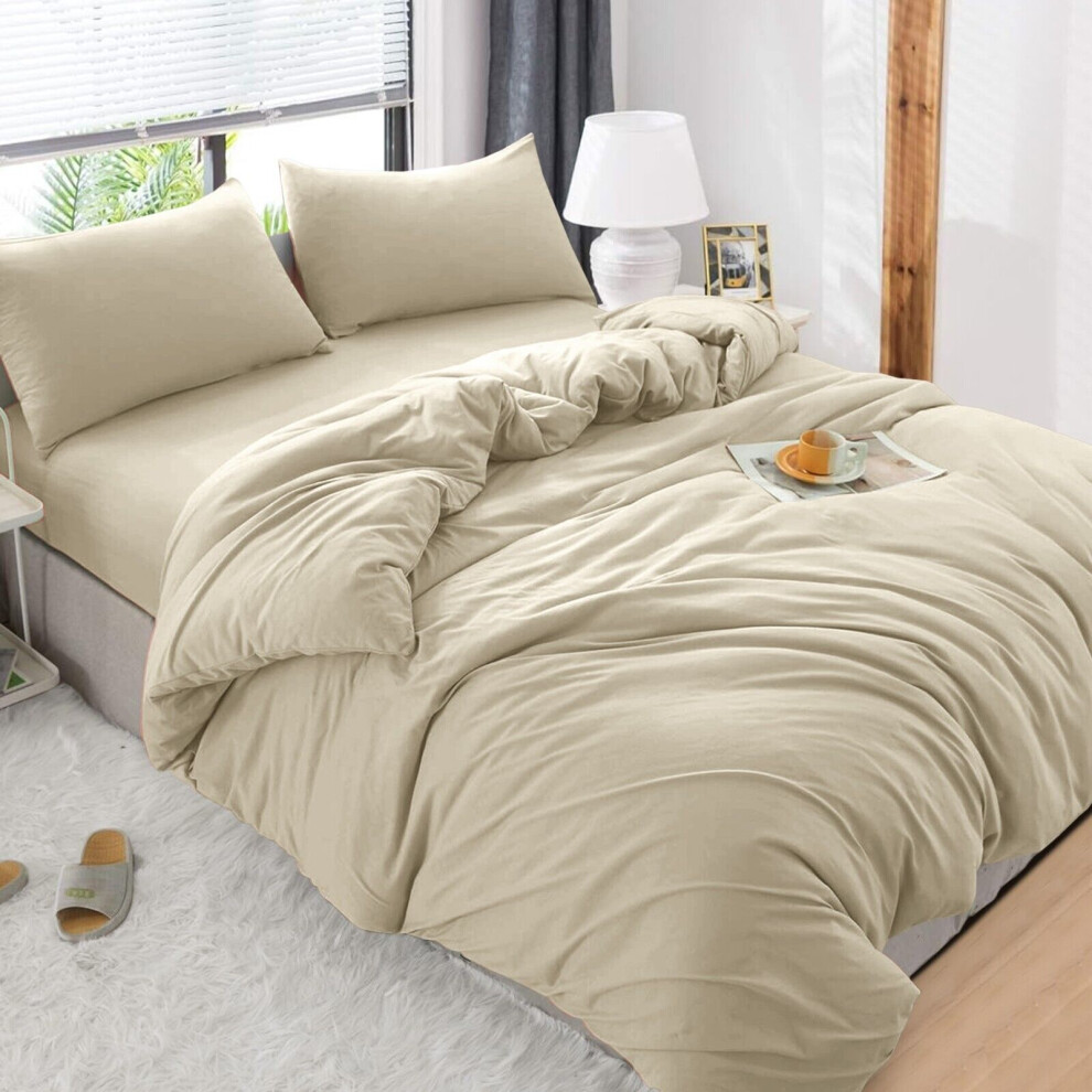 (Beige, Super King) 4 Piece Duvet Covers Bedding Set Fitted Bed Sheets
