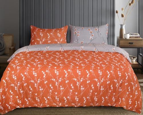 MOONLIGHT20015 Super King Duvet Set Soft Printed Luxury Bedding Sets Brushed Microfiber Duvet Covers with Pillowcases (Rust Flower 260x220 CM)