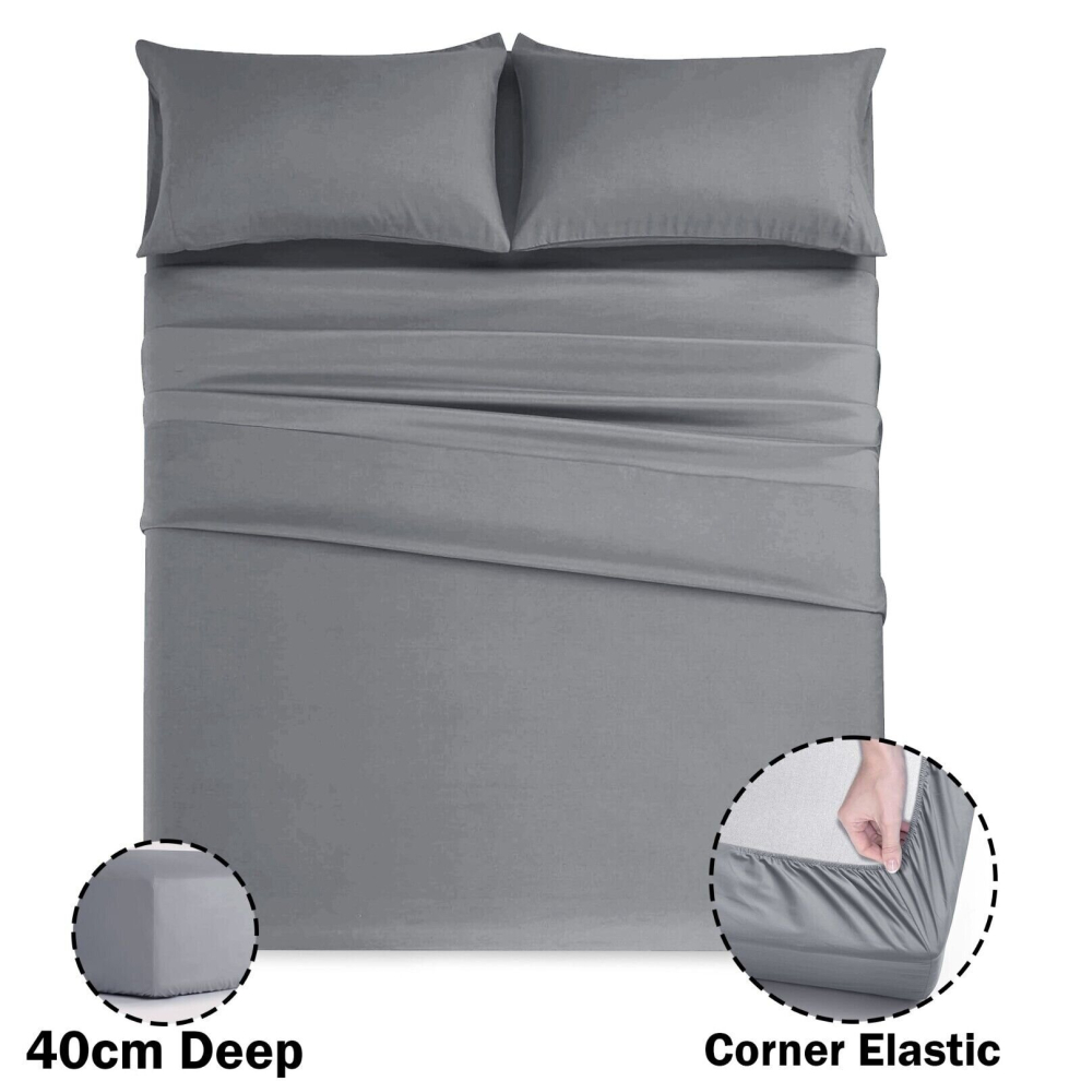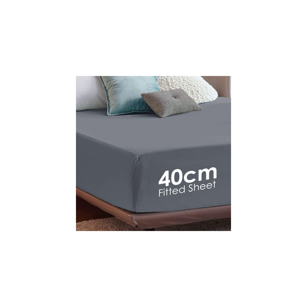 (Super King Fitted Sheets 40cm) Grey Fitted Sheet Bed Sheets Single Double King