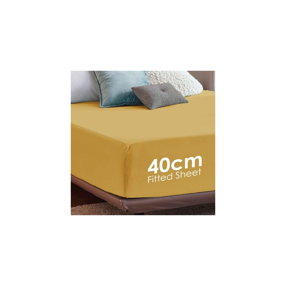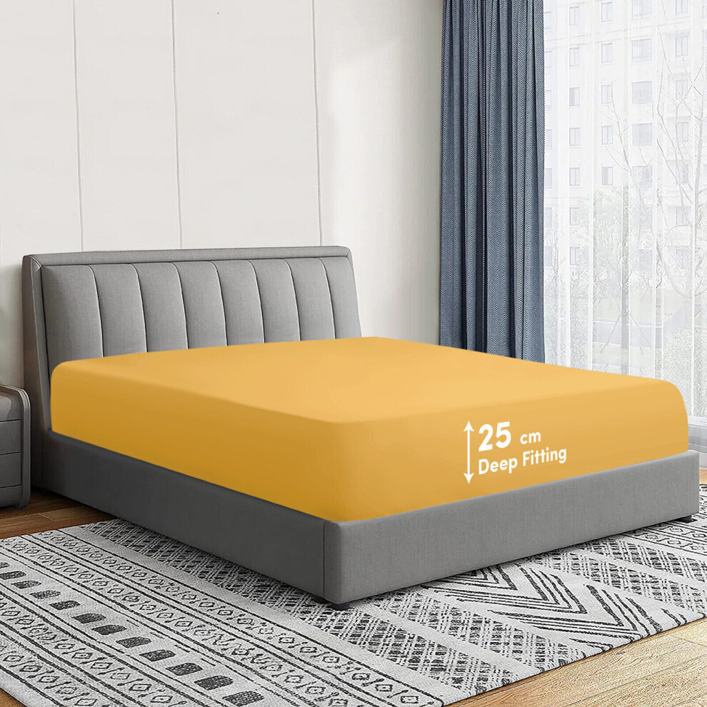(Ochre, Super King) Extra Deep Fitted Sheets 40cm Bedsheet Single Double King & Super King