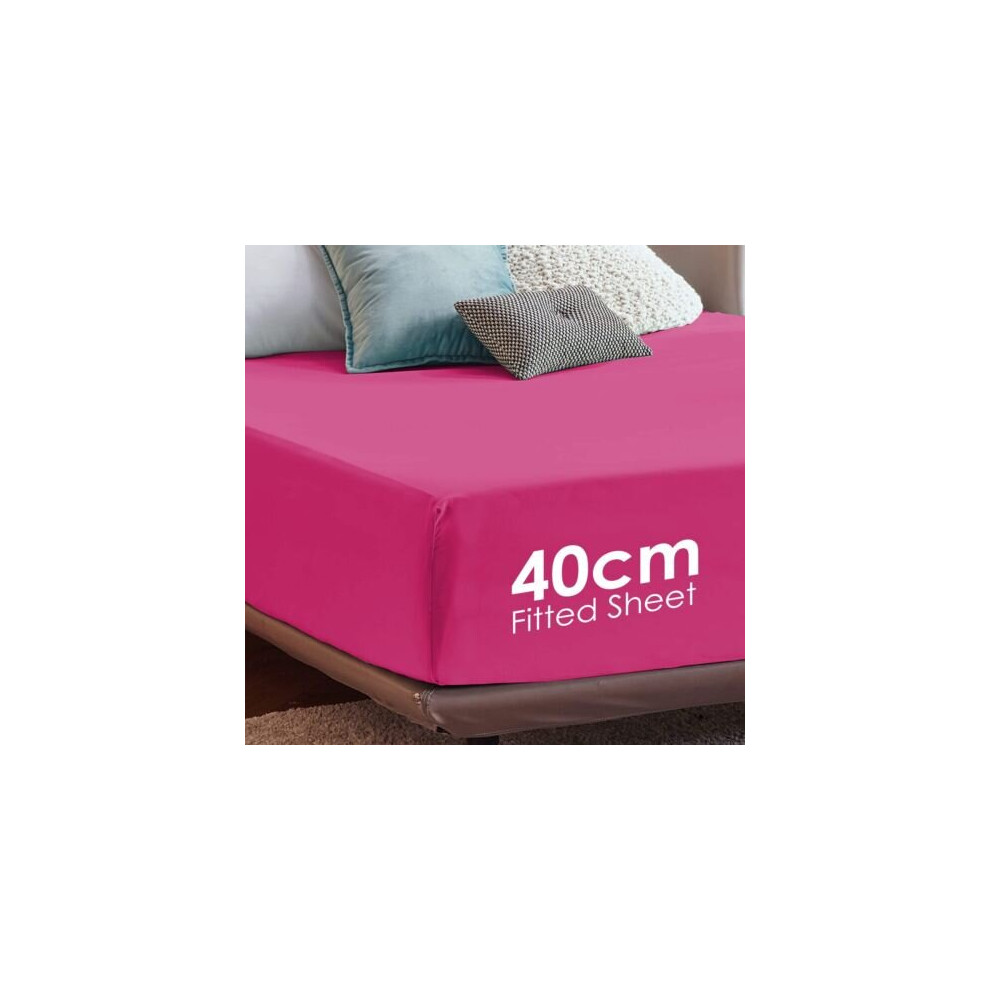 (Pink, Super King) Extra Deep Fitted Sheets 40cm Bedsheet Single Double King & Super King