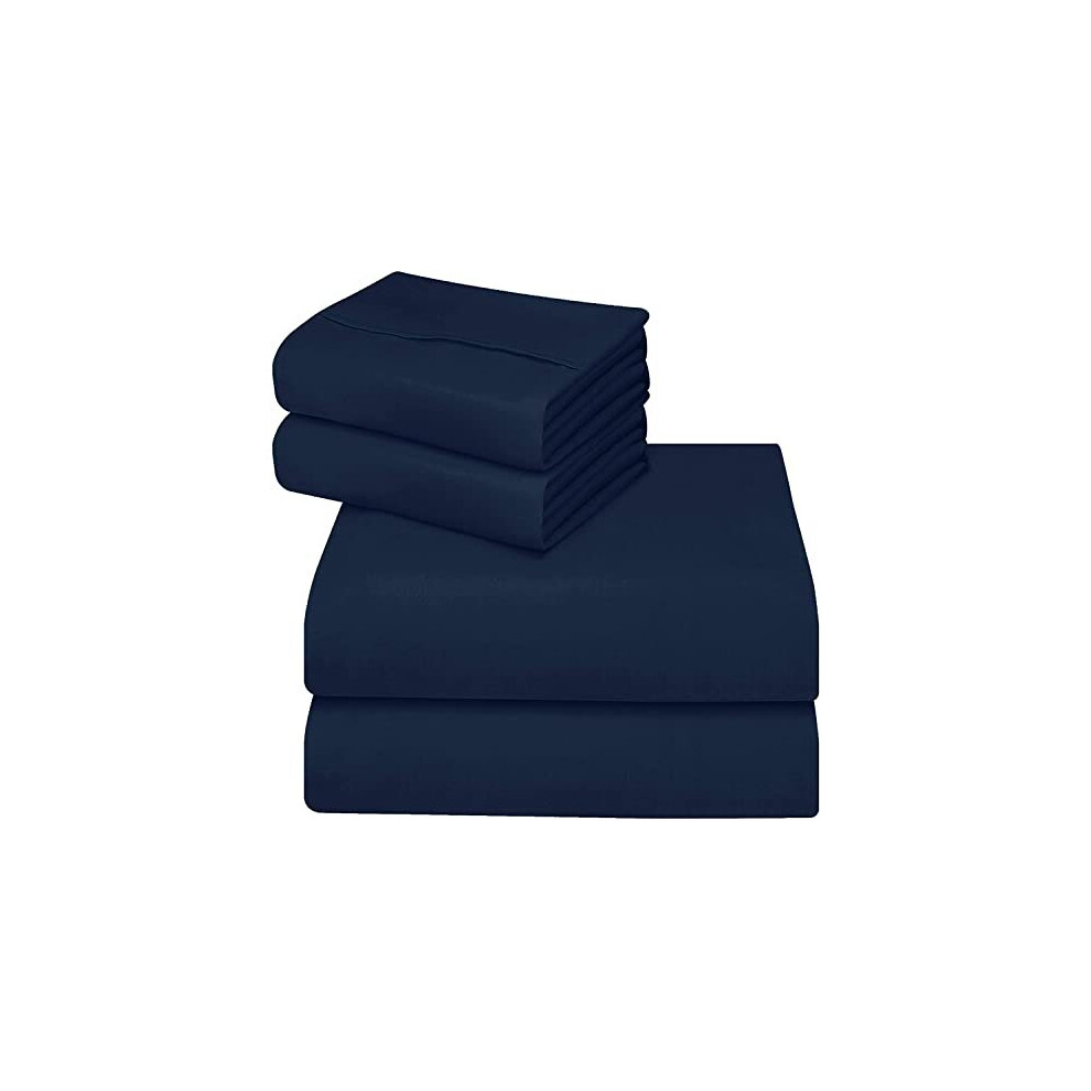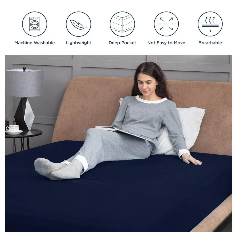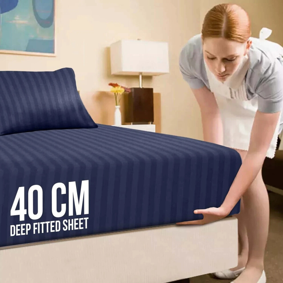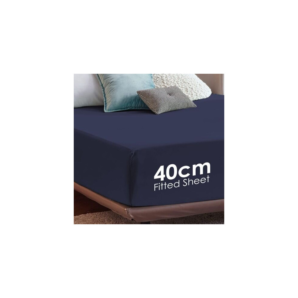 (Navy, Super King) Fitted Sheets 40cm Deep Bed Sheet Single Double King