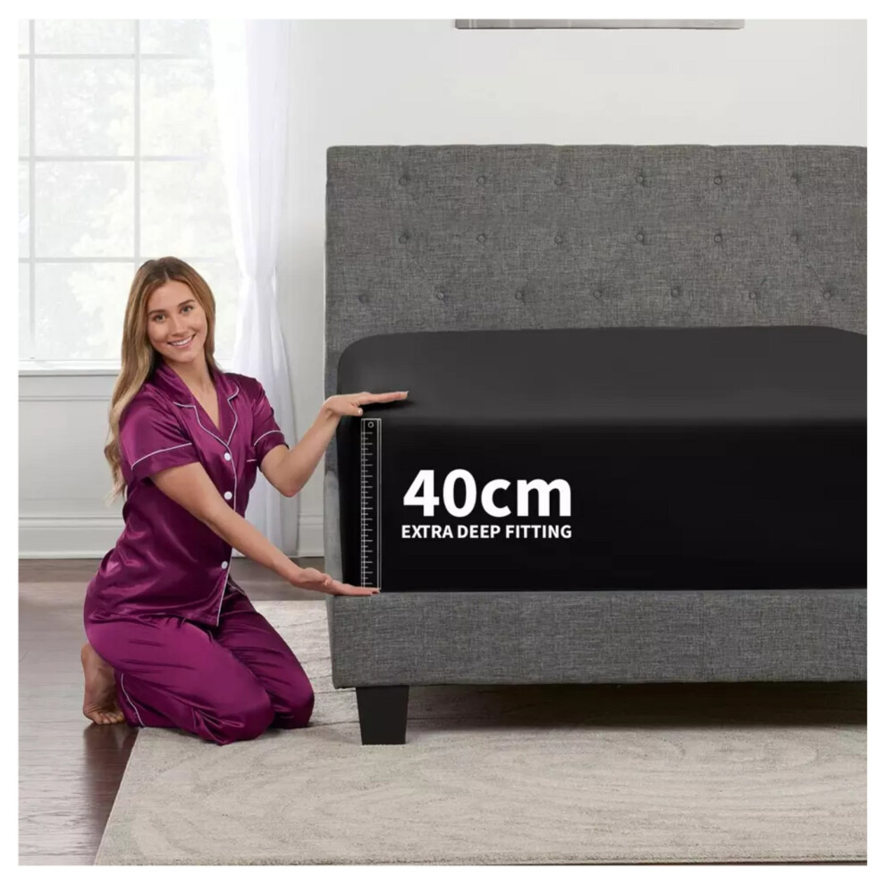 (Black, Super King) Extra Deep Fitted Sheets 40cm Bedsheet Single Double King & Super King