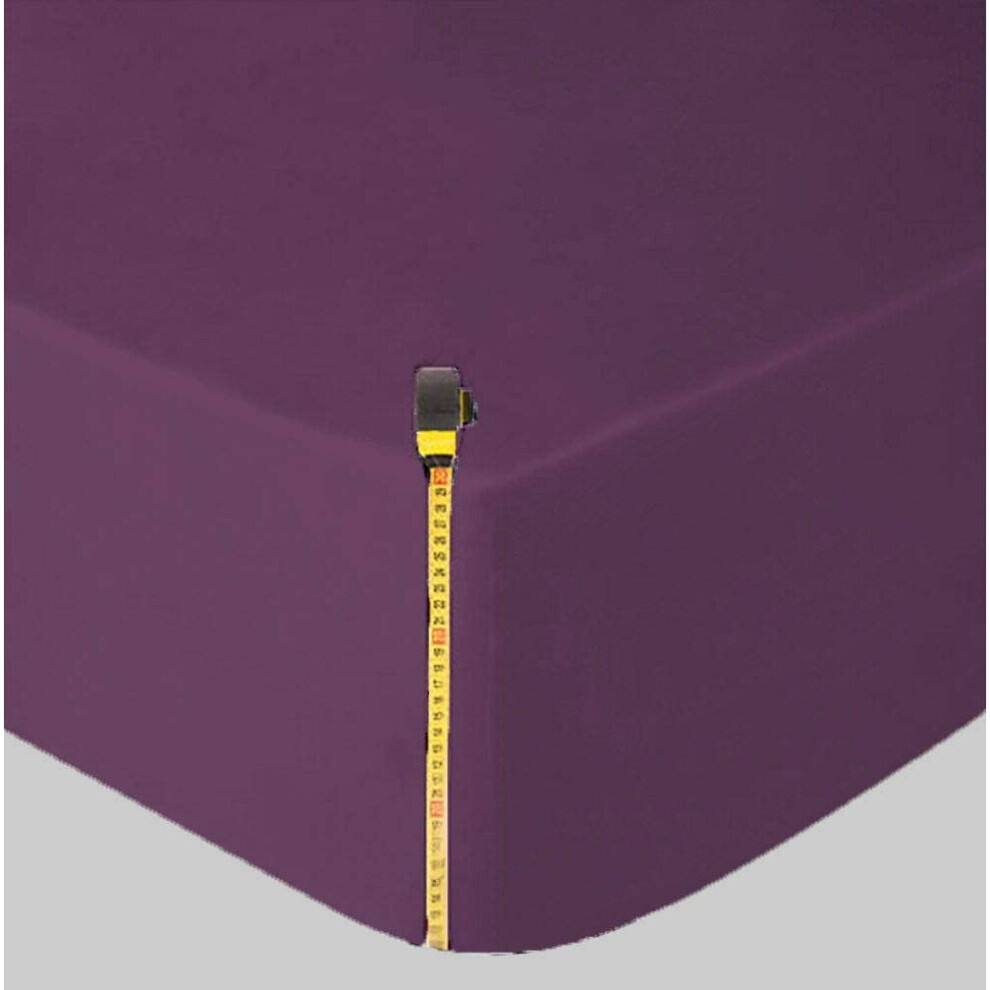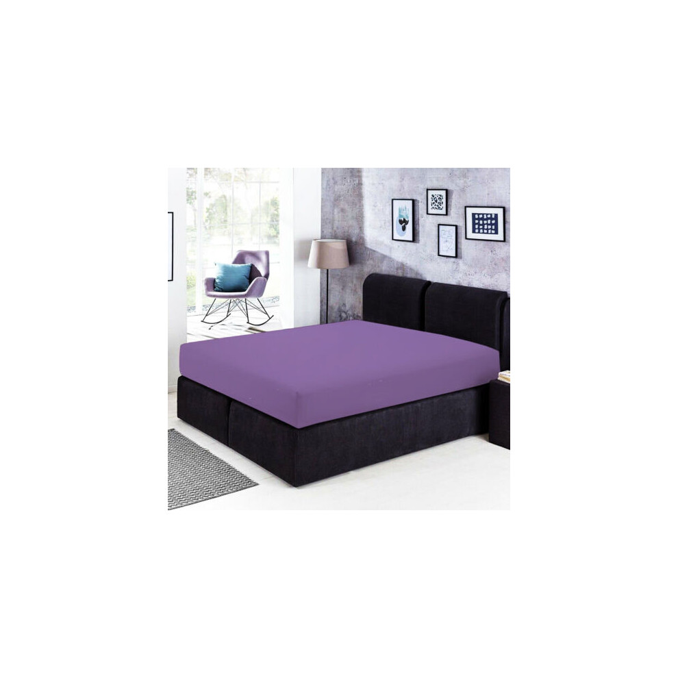 (Super King, Purple) Fitted Bed Sheets Poly Cotton Single Double King