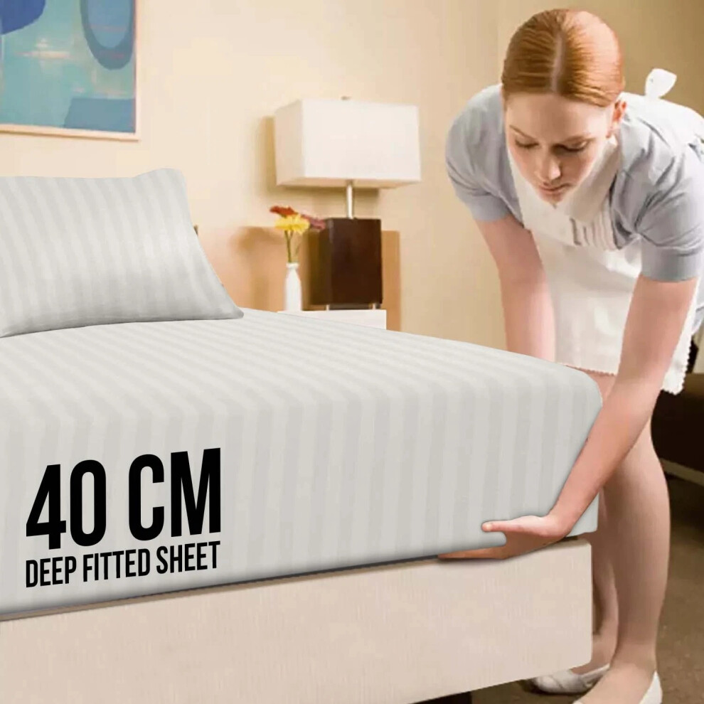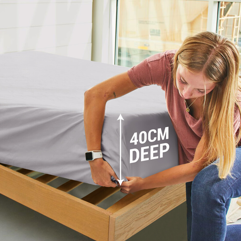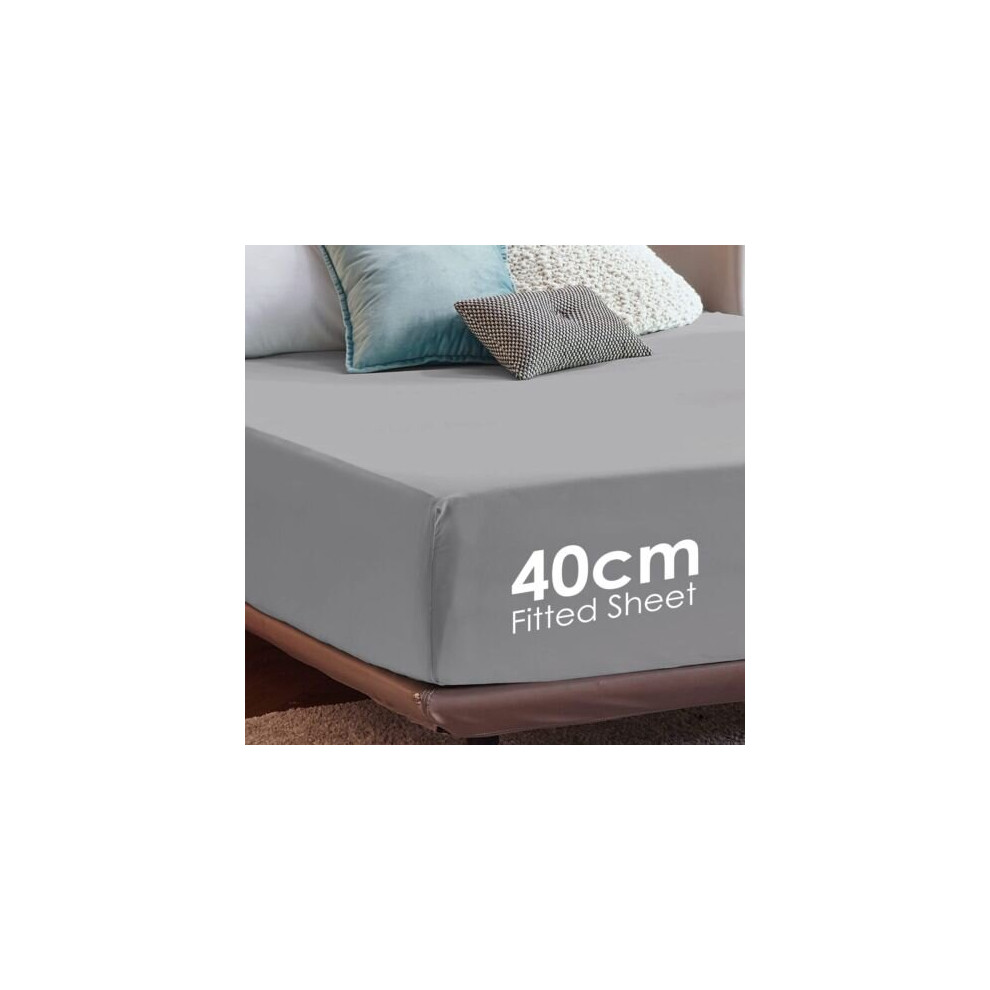 (Silver, Super King) Fitted Sheets 40cm Deep Bed Sheet Single Double King
