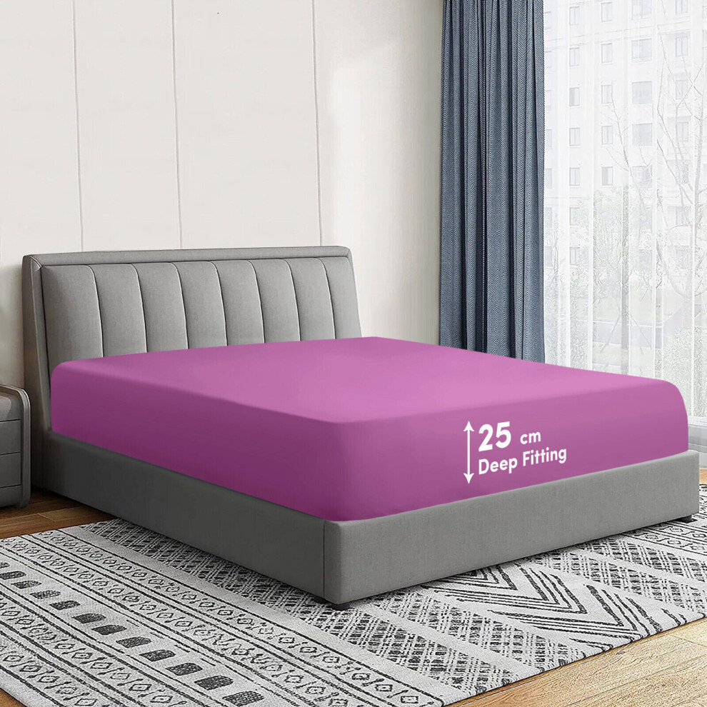 (Purple, Super King) Extra Deep Fitted Sheets 40cm Bedsheet Single Double King & Super King