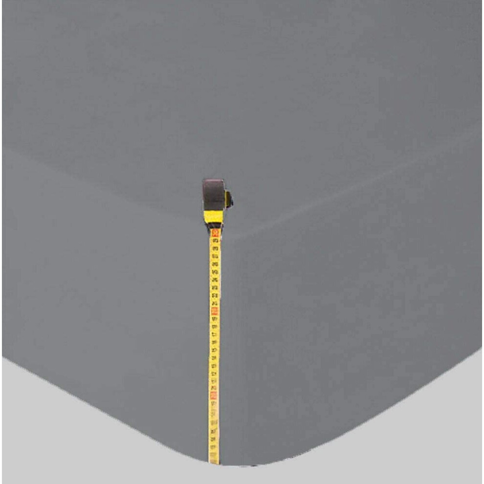 (Super King Fitted Bed Sheets, Grey 25cm Plain Fitted Sheet) Fitted Bed Sheets 25cm/40cm Extra Deep Mattress Sheet Single Double King
