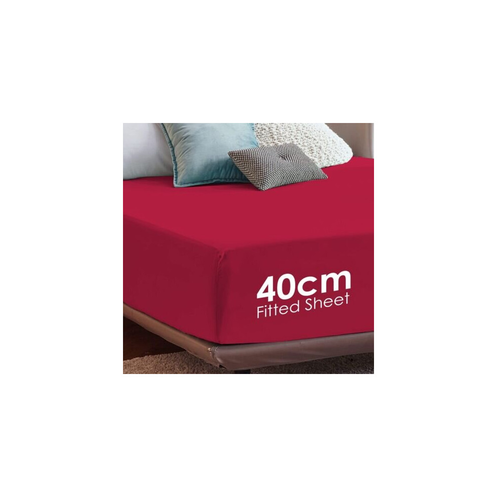 (Red, Super King) Fitted Sheets 40cm Deep Bed Sheet Single Double King