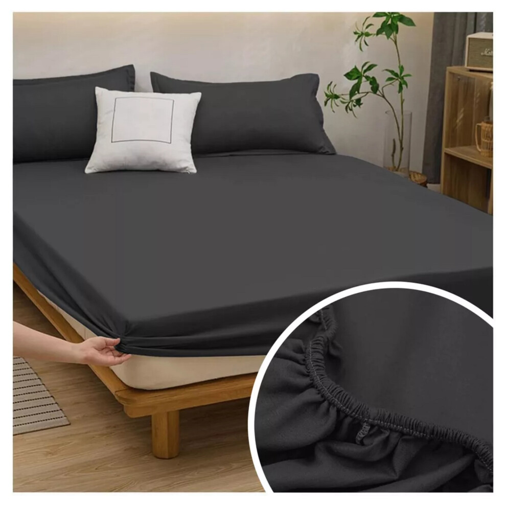 (Super King, Charcoal) Fitted Bed Sheets Poly Cotton Single Double King
