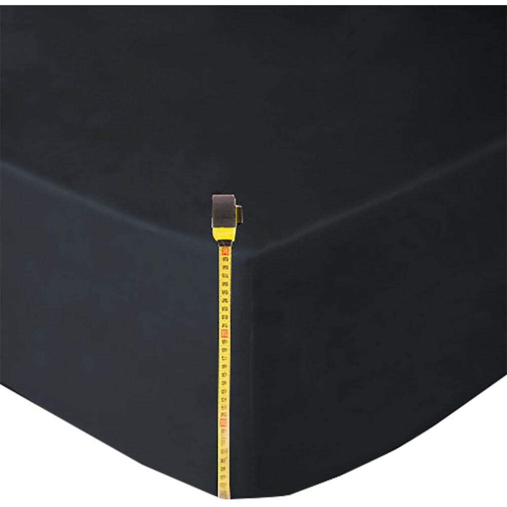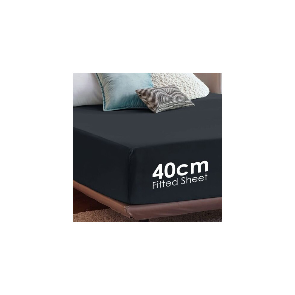 (Black, Super King) Fitted Sheets 40cm Deep Bed Sheet Single Double King