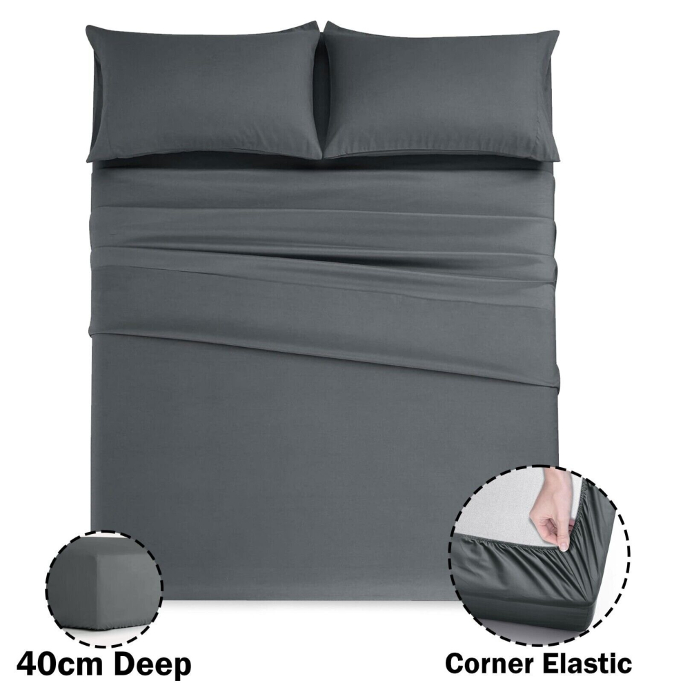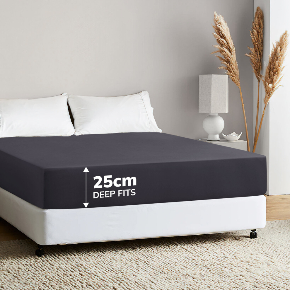 (Charcoal, Super King) Fitted Sheets 40cm Deep Bed Sheet Single Double King