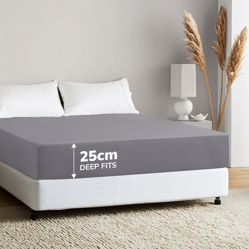 (Super King Fitted Sheets 25cm) Grey Fitted Sheet Bed Sheets Single Double King