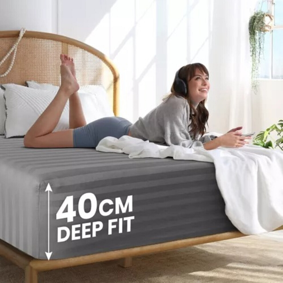 (Grey, Super King) Extra Deep Fitted Sheets 40cm Bedsheet Single Double King & Super King