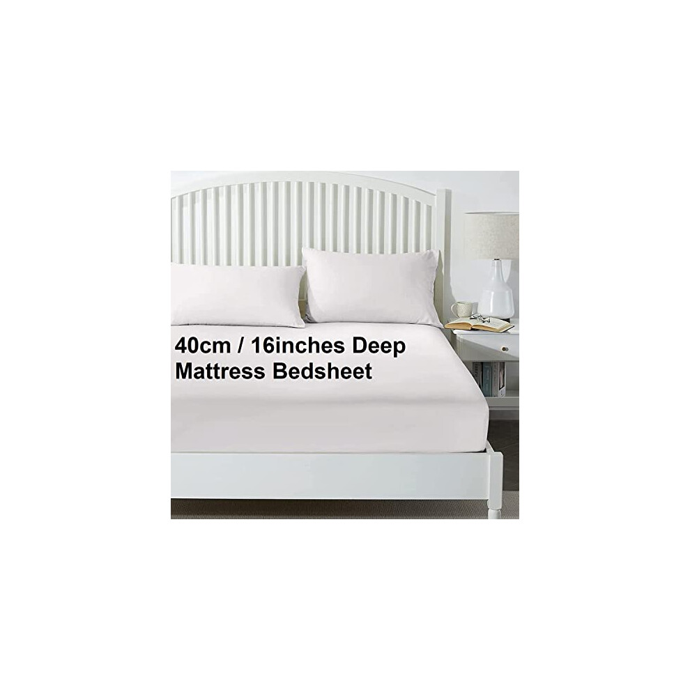 (White, Super-King) Extra Deep Fitted Sheets 16"/40CM Bed Sheets