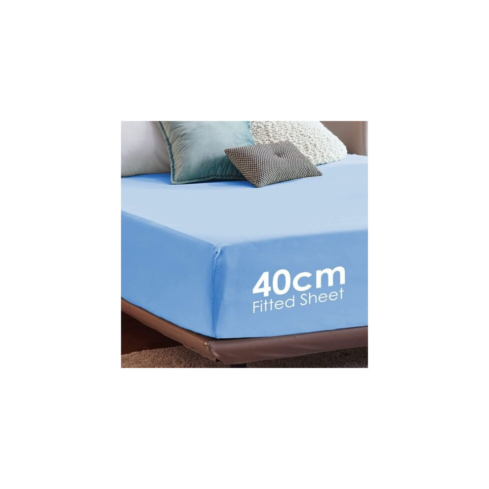 (Sky Blue, Super King) Extra Deep Fitted Sheets 40cm Bedsheet Single Double King & Super King