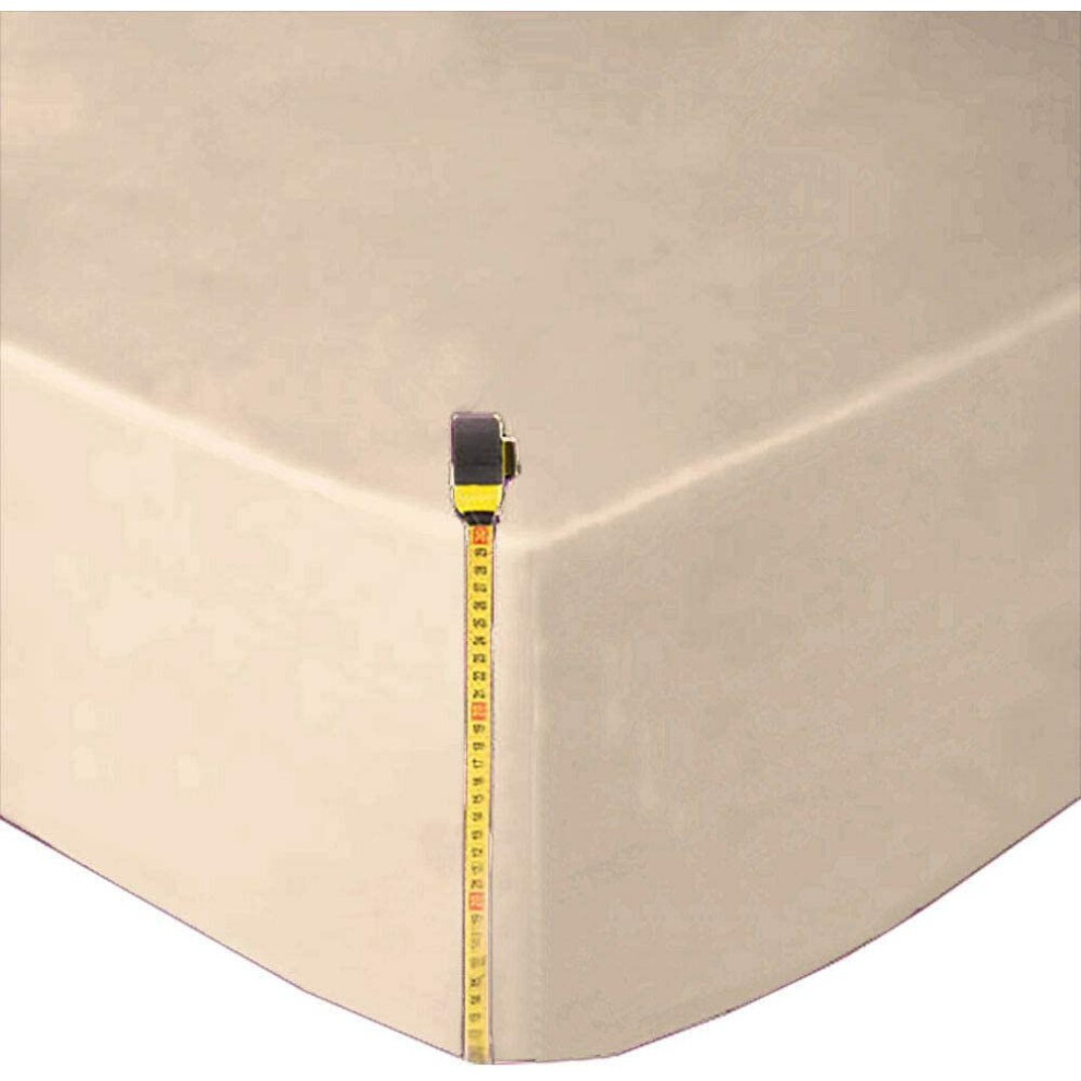 (Super King, Cream) Fitted Bed Sheets Poly Cotton Single Double King