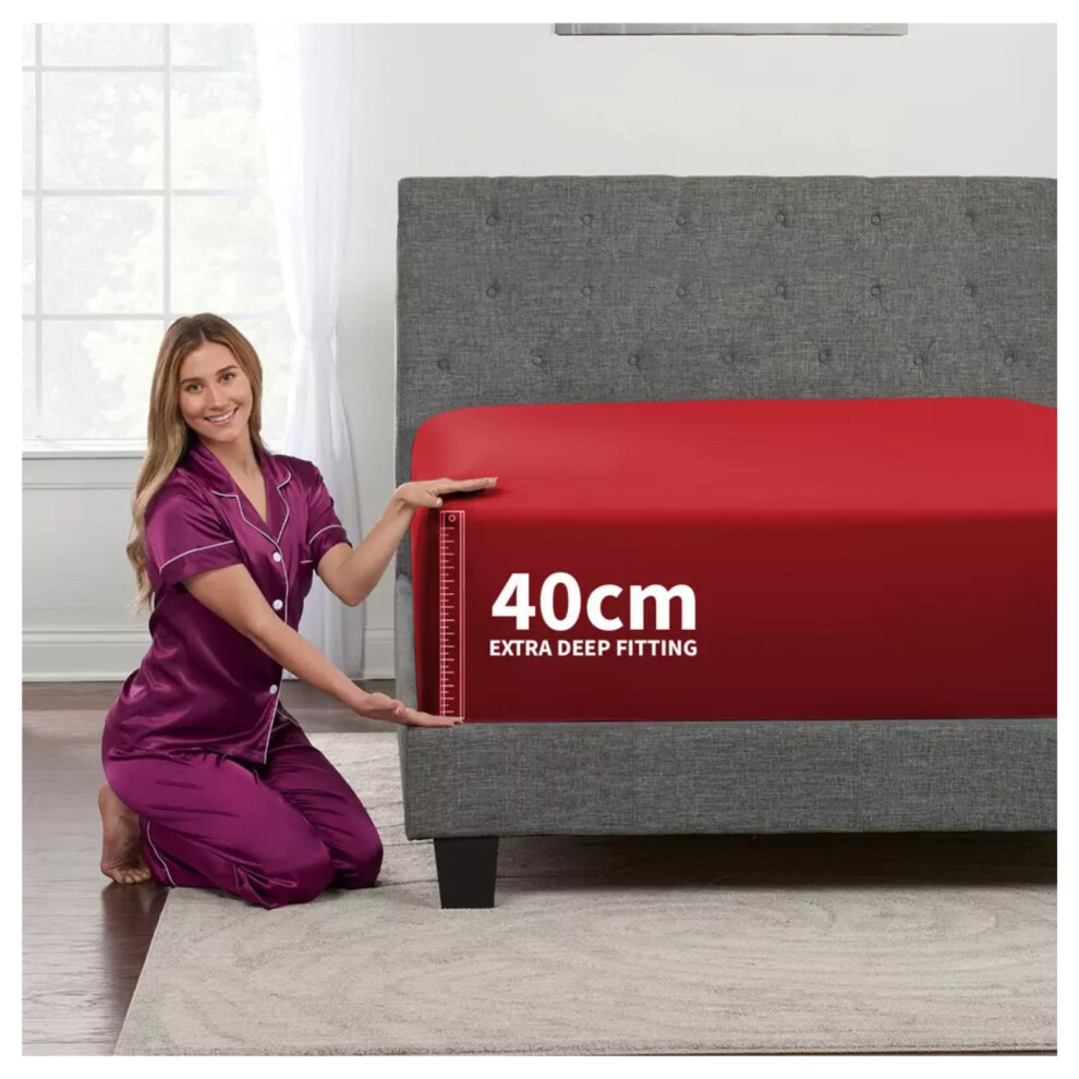 (Red, Super King) Extra Deep Fitted Sheets 40cm/ 16" Soft Bed Sheet