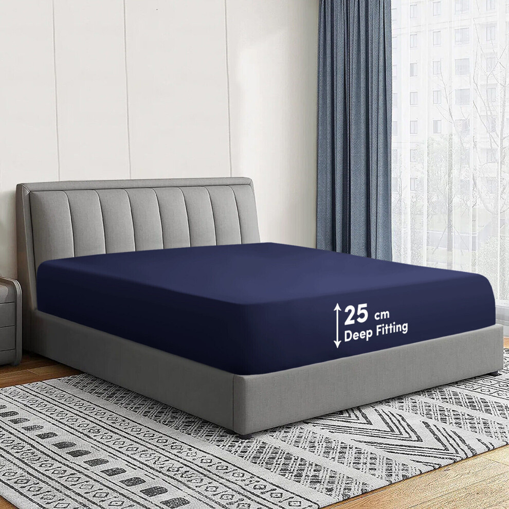 (Navy, Super King) Extra Deep Fitted Sheets 40cm Bedsheet Single Double King & Super King