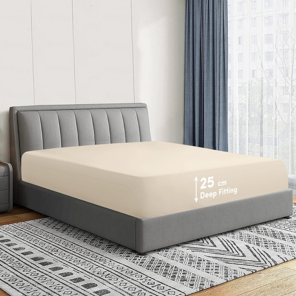 (Cream, Super King) Extra Deep Fitted Sheets 40cm Bedsheet Single Double King & Super King