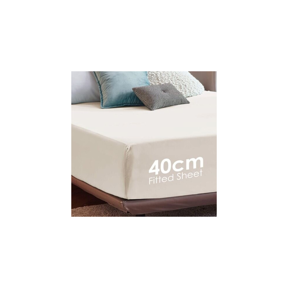 (Cream, Super King) Fitted Sheets 40cm Deep Bed Sheet Single Double King