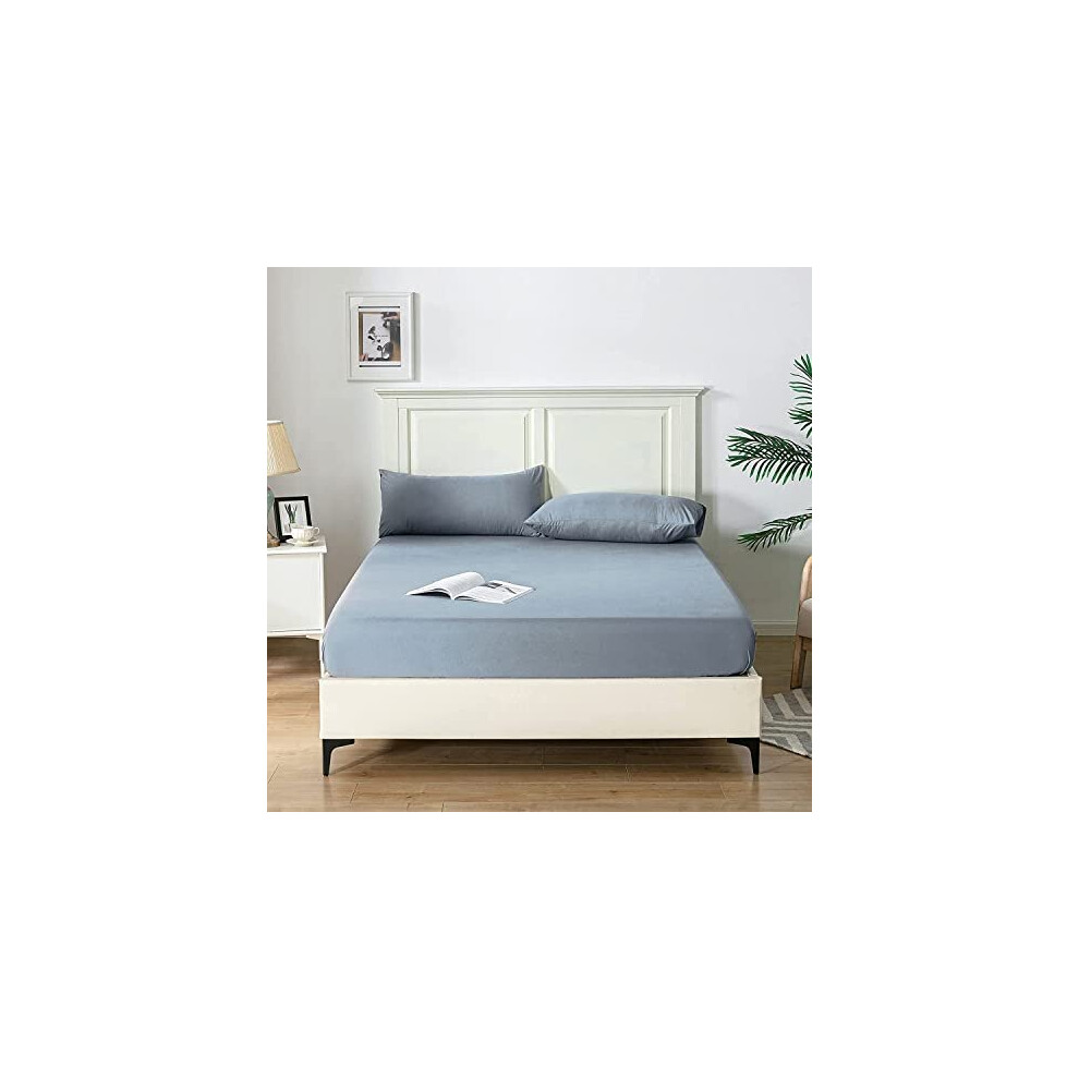 Good Nite Super King Fitted Sheet Bed Sheets 25CM Extra Deep Pocket Soft and Breathable Fitted Bedding Sheets (Blue Gray, Super King)