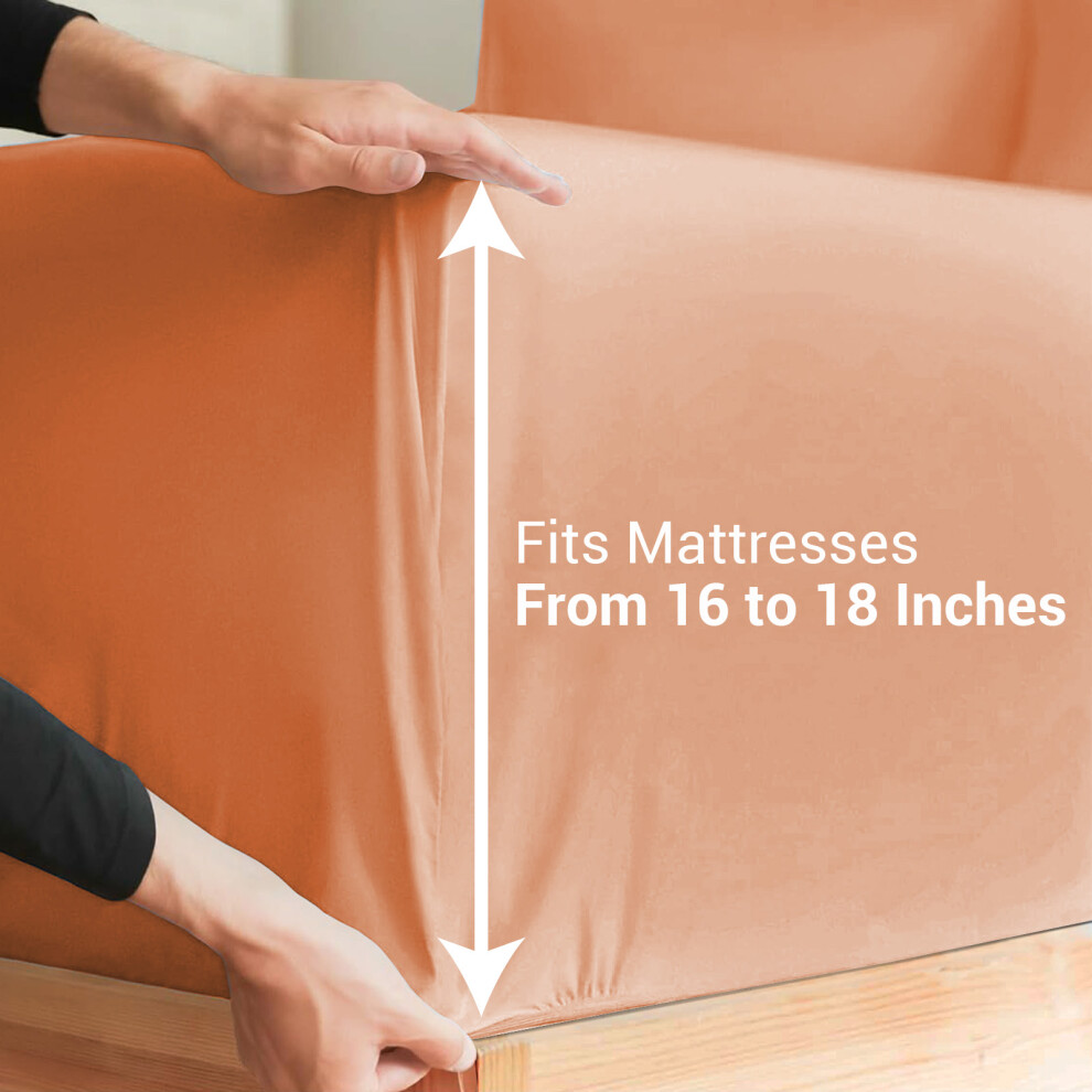 (Rust/Orange, Super King) Extra Deep Fitted Sheets 40cm Bedsheet Single Double King & Super King
