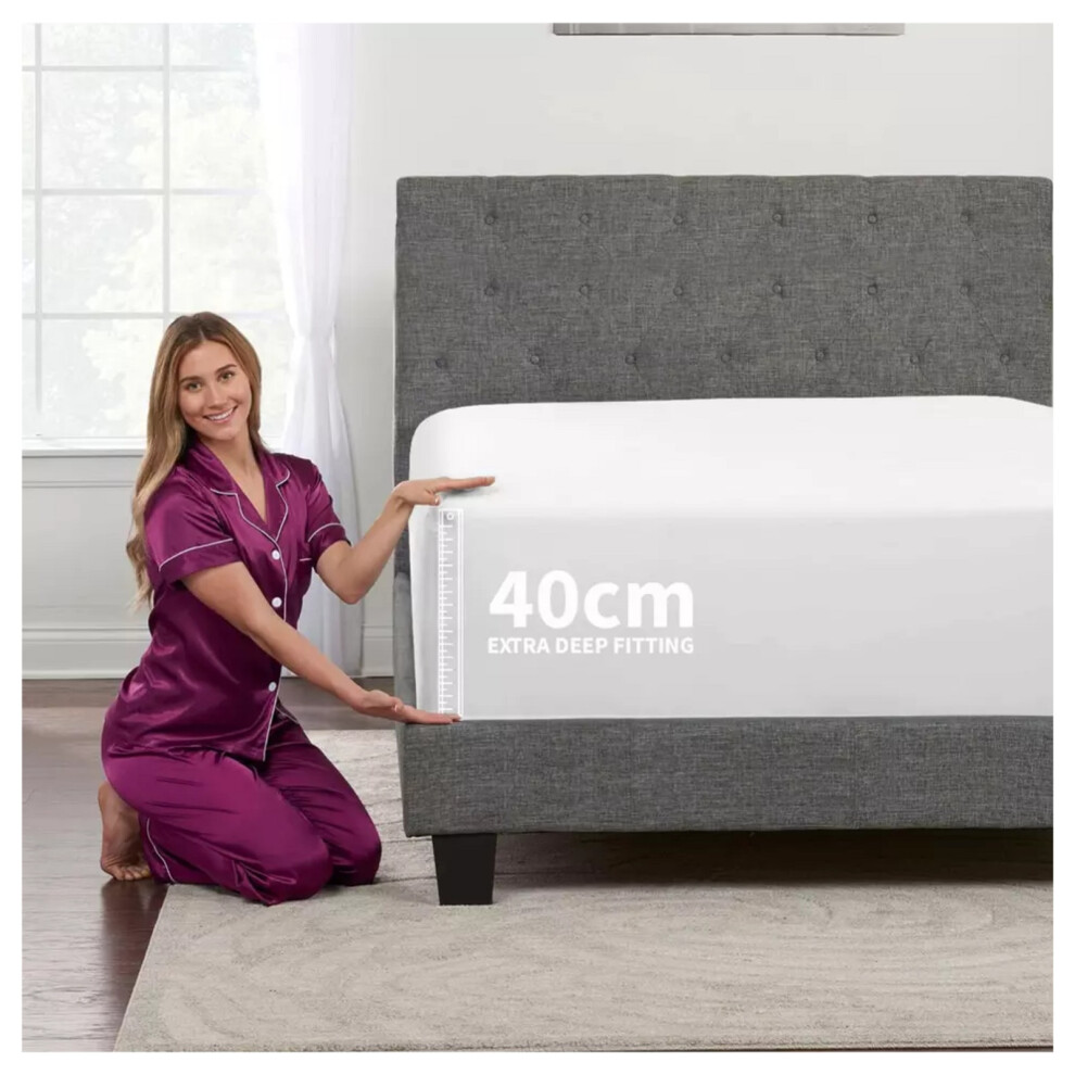 (White, Super King) Extra Deep Fitted Sheets 40cm Bedsheet Single Double King & Super King