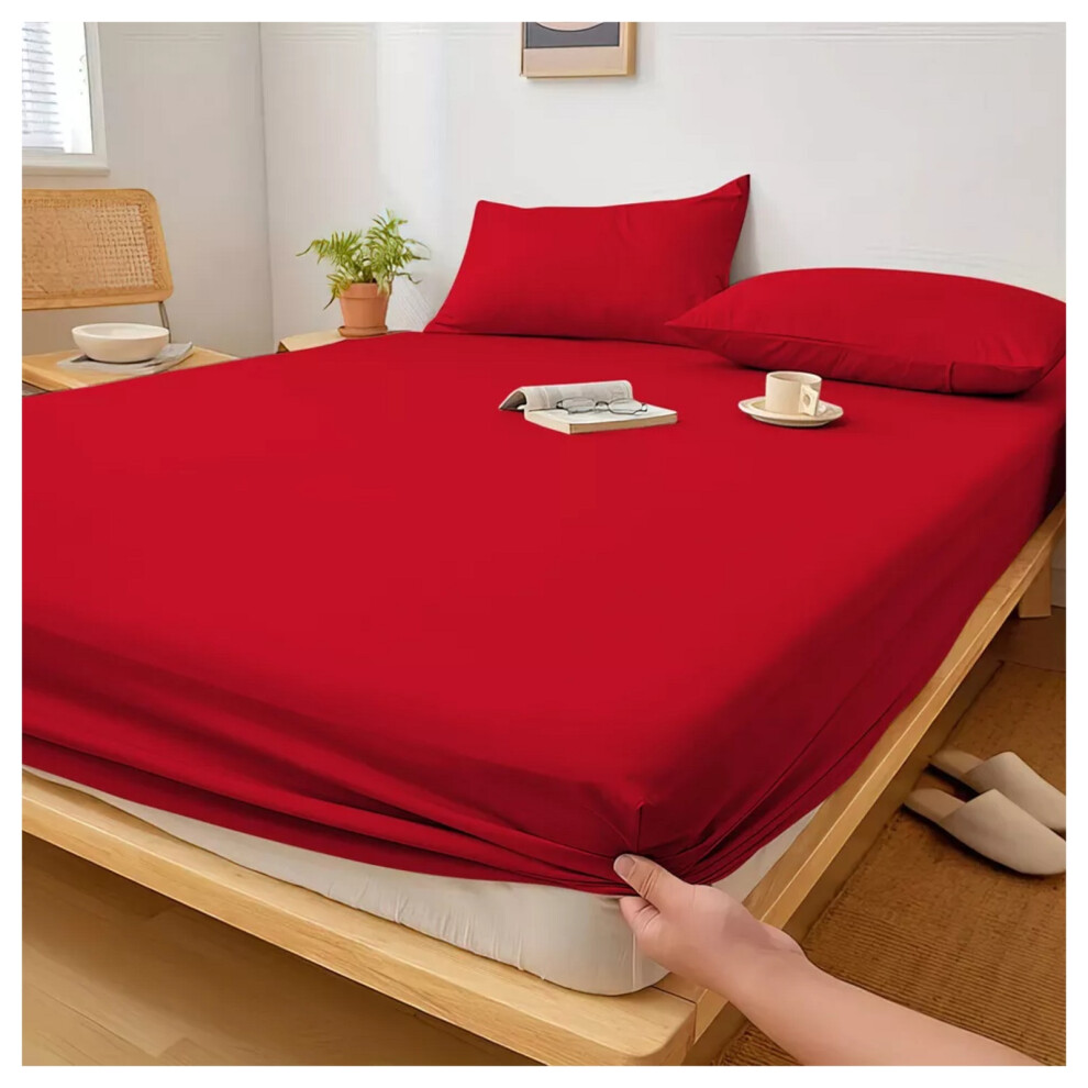 (Single) Deep Fitted Sheet Single Double King Super King Size Microfiber Red Bed Sheets