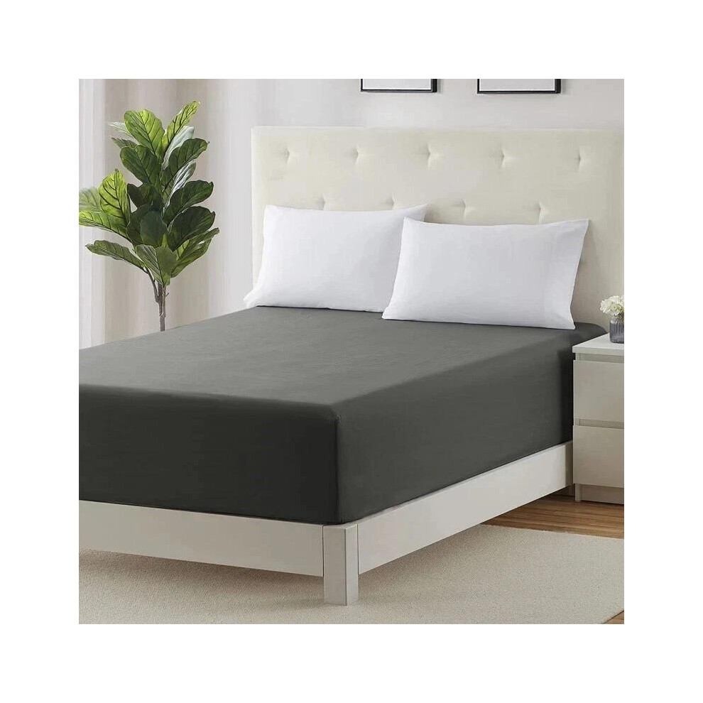 "GC GAVENO CAVAILIA Plain Fitted Sheets - Easy Care Polycotton 25cm Deep Fitted Sheets - Breathable, Anti Allergic Bottom Sheets - Elastic Corner Bed Sheet Super King Size - Charcoal - 180 x 200 cm"