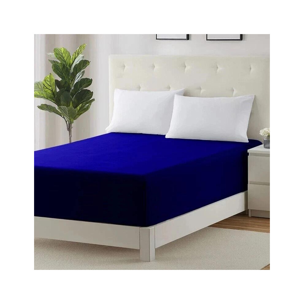 (Royal Blue, Super King (40cm Fitted Sheet)) 30CM/40CM Fitted Sheets Extra Deep Single Double King Super King Size Bed Sheets