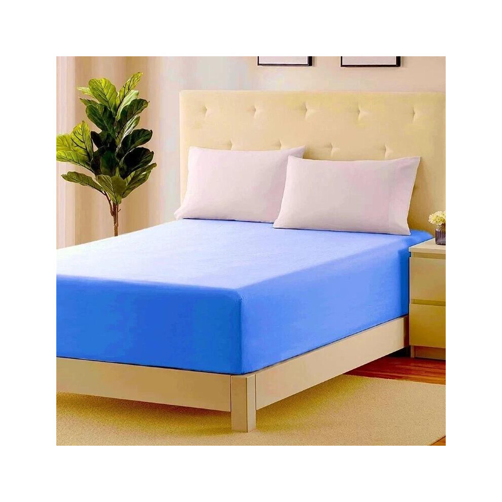 (Mid Blue, Double (30cm Fitted Sheet)) 30CM/40CM Fitted Sheets Extra Deep Single Double King Super King Size Bed Sheets