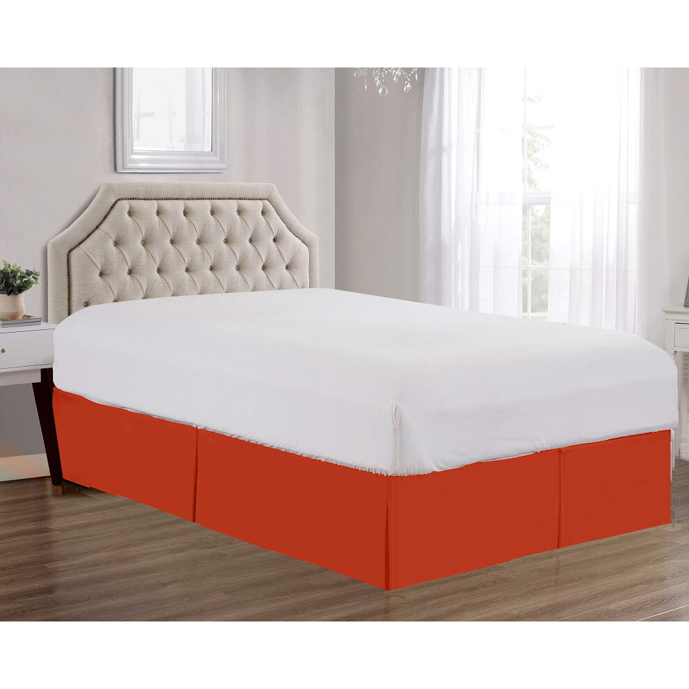 Sheets & Beyond Super Soft Solid Brushed Microfiber 14"""" Pleated Bed Skirt/Dust Ruffle (King Size Orange)
