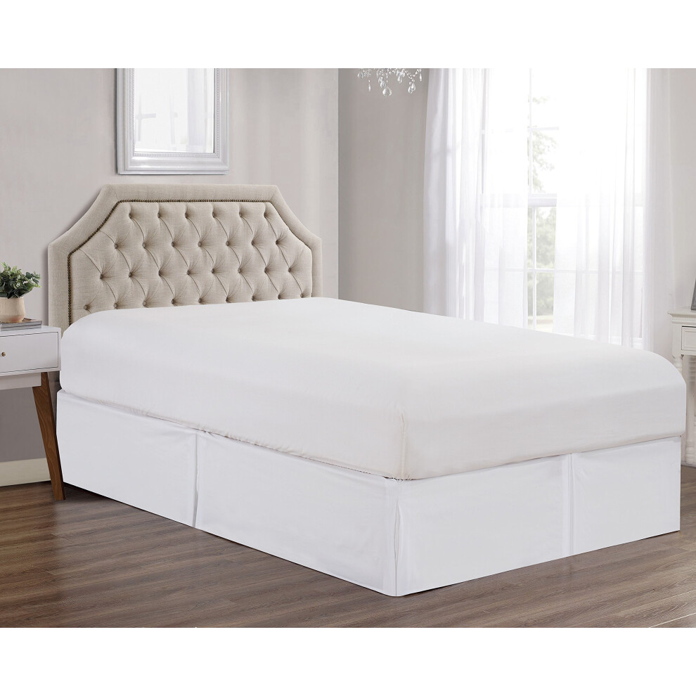 Sheets & Beyond Super Soft Solid Brushed Microfiber 14"""" Pleated Bed Skirt/Dust Ruffle (King Size White)