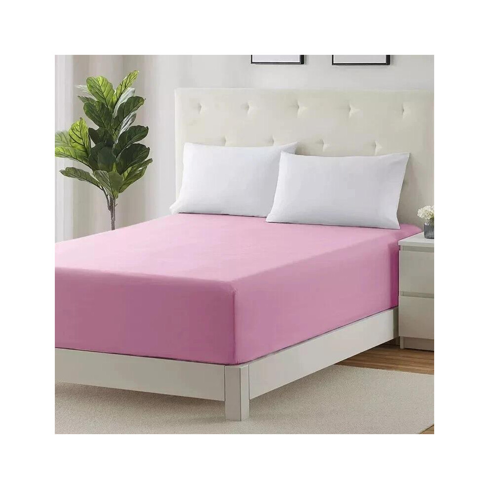 (Pink, Super King (30cm Fitted Sheet)) 30CM/40CM Fitted Sheets Extra Deep Single Double King Super King Size Bed Sheets