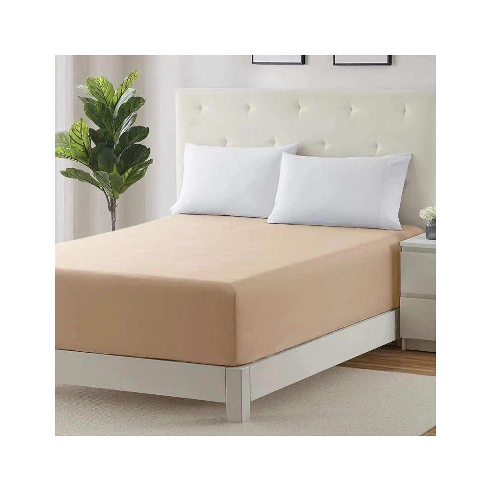 (Beige, Double (30cm Fitted Sheet)) 30CM/40CM Fitted Sheets Extra Deep Single Double King Super King Size Bed Sheets